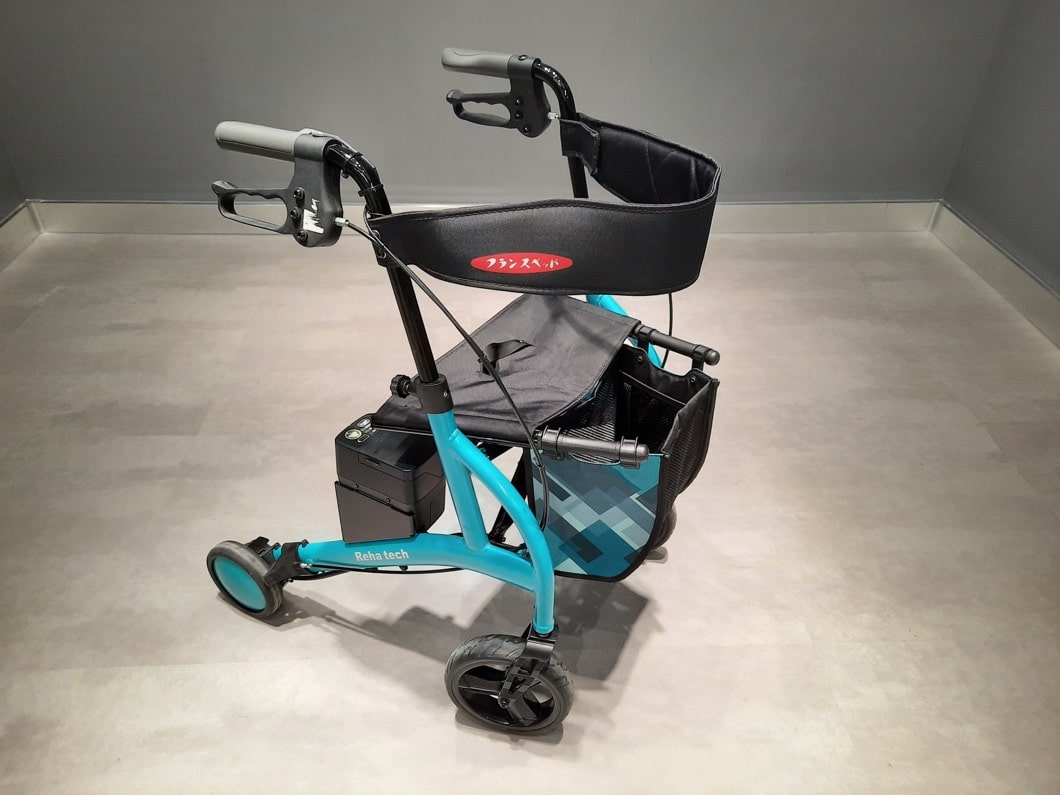 有別於一般輪椅,這款輪椅感測長者可用的動力,協助其安全而自然地出行。其外型設計像一般外出購物車,同時附設有小坐椅,長者疲累時可以坐下休息。不得不提它還有自動剎車功能,保障上落斜坡的安全。