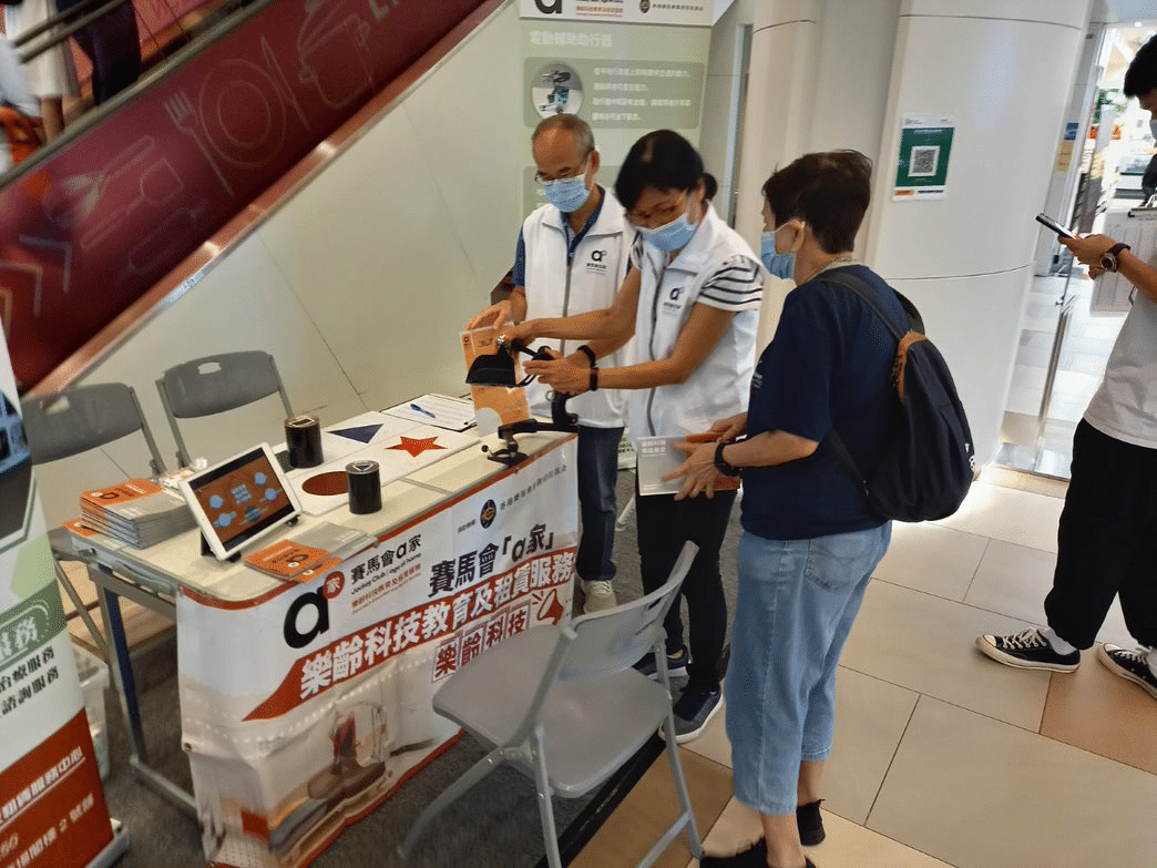 我是一個家庭主婦,多年來亦有做義工服務其他長者的經驗。不過一年多前隨着疫情日益嚴重,許多服務都已被暫停,偶爾在網上留意到賽馬會「a家」在招募義工,加上女兒的鼓勵,而且服務位置也很方便,所以便決定報名參加。而我在賽馬會「a家」的義工服務主要有兩種,一種是設置戶外攤位,在屋苑等地方協助推廣中心服務,有時更會負責帶領遊戲環節,與長者及其他市民打成一片;另一種是在賽馬會「a家」樂齡科技教育及租賃服務中心內作導賞,為參觀者介紹不同類型的器材,示範它們的功用。這項工作非常有趣,我很榮幸為曾到中心參觀的行政會議非官守議員介紹器材。
