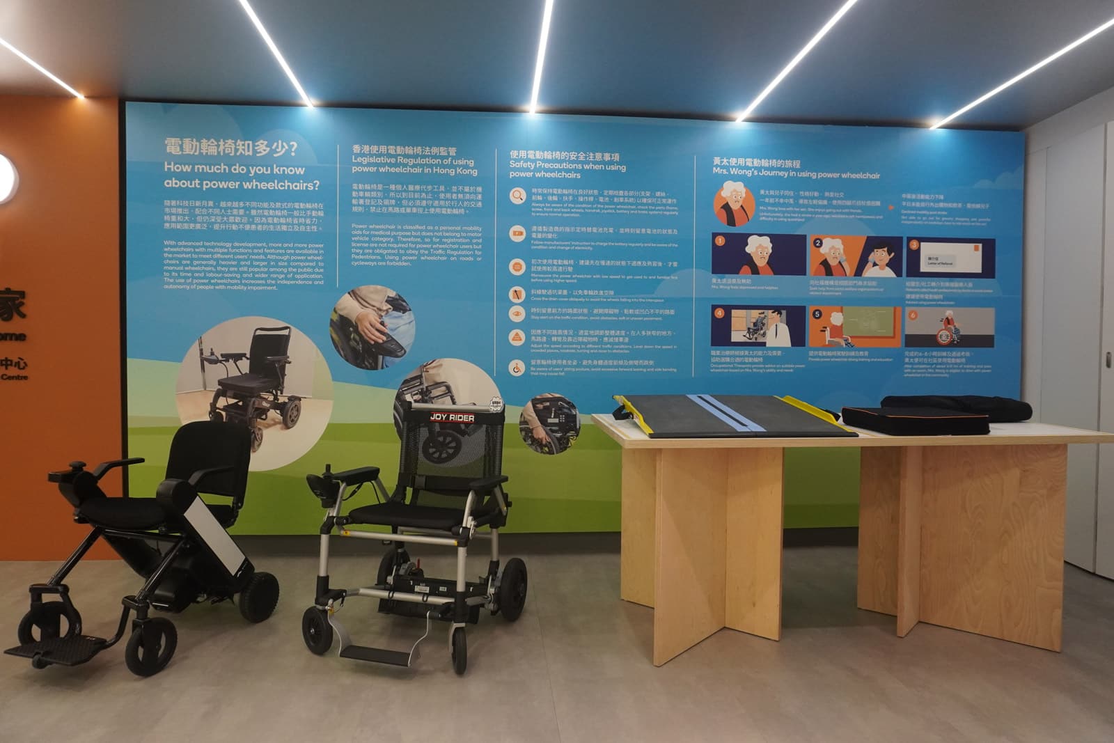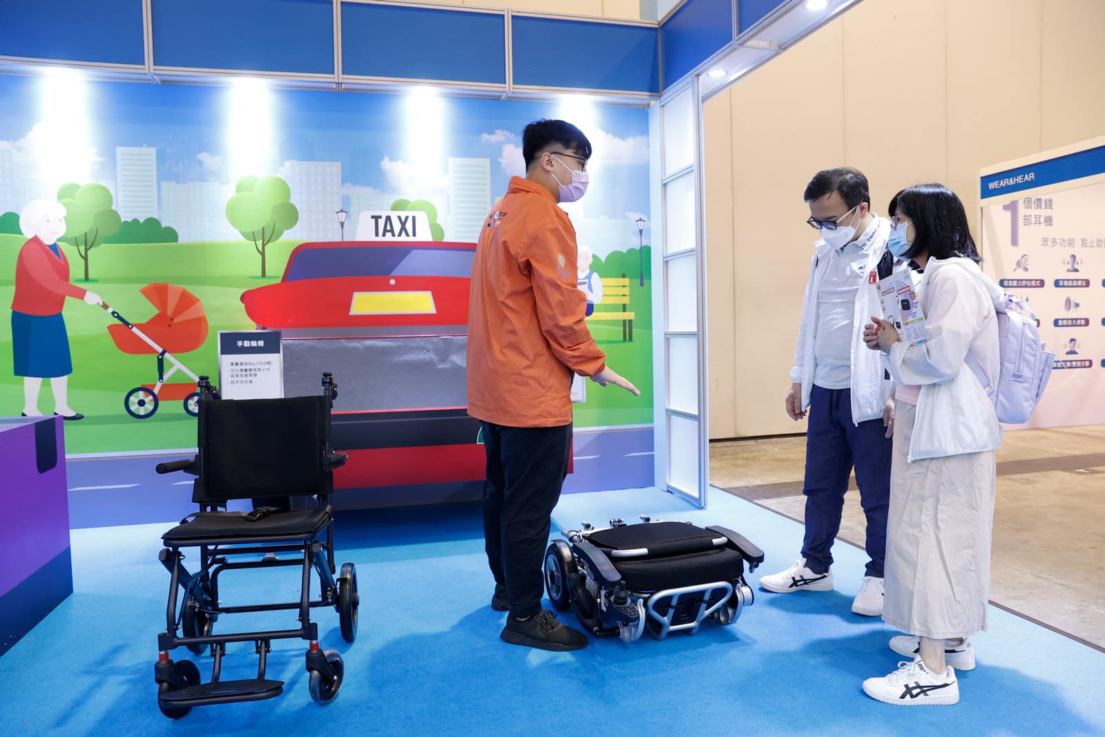 「樂齡科技博覽暨高峰會2022」於11月2至5日順利舉行, 而我們賽馬會「a家」本年亦參與其中,設置展位於「出行輔助體驗館」。 體驗館以城市為設計概念, 將不同展區化作城景。當中的輔助器材清潔服務介紹,讓參觀者對我們樂齡科技清潔及保養服務中心的運作一目了然,特設的互動遊戲更帶領大家認識日常如何清潔自己的出行輔具。展示區則提醒大家選擇輔助出行器具時需考慮的要素, 更展出了多款特色器材讓大家親身試用。而設計成日常出行場景(包括的士、巴士、鐵路和電梯)的體驗區,既讓大家了解各款出行輔具的功能, 亦更切身處地感受到出行輔具對長者居家安老和日常社區生活的重要。