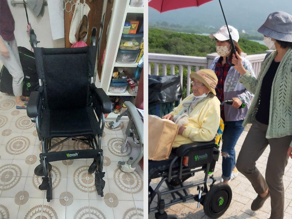 因此,我開始在網上尋找租用移位機的資料,卻發現坊間此類的服務並不多。幸好,我們得到家福會轉介,從而認識到賽馬會「a家」的器材租賃服務。由於有香港賽馬會慈善信託基金的捐助,「a家」的器材租借費用相對便宜,更重要是「a家」團隊提供的服務十分完善,由運送器材、上門組裝和教學指導,以至租用後的跟進服務都能夠一一兼顧。另外,也要稱讚細心的職業治療師和樂齡科技應用指導員,特地安排上門家訪,了解媽媽的日常生活及器材的使用情況。過程中他們留意到我們居住的地方有很多很長的斜路,不便一般輪椅出行,於是建議我們租用電動助推輪椅。現在即使只有我或工人姐姐自己一人,也可以輕鬆帶媽媽外出。