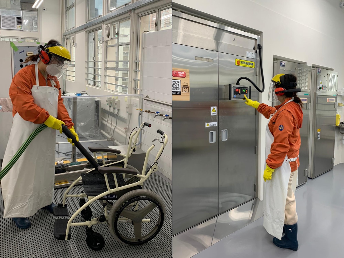 中華傳道會恩光長者鄰舍中心不時應用各種樂齡科技器材,協助提供更完善的長者照顧服務。但因為同工工作繁重,未能夠安排人手經常徹底清潔所用的器材,同時亦缺乏專業的清洗設備,往往只能簡單地噴上消毒劑和用濕布拭擦器材。