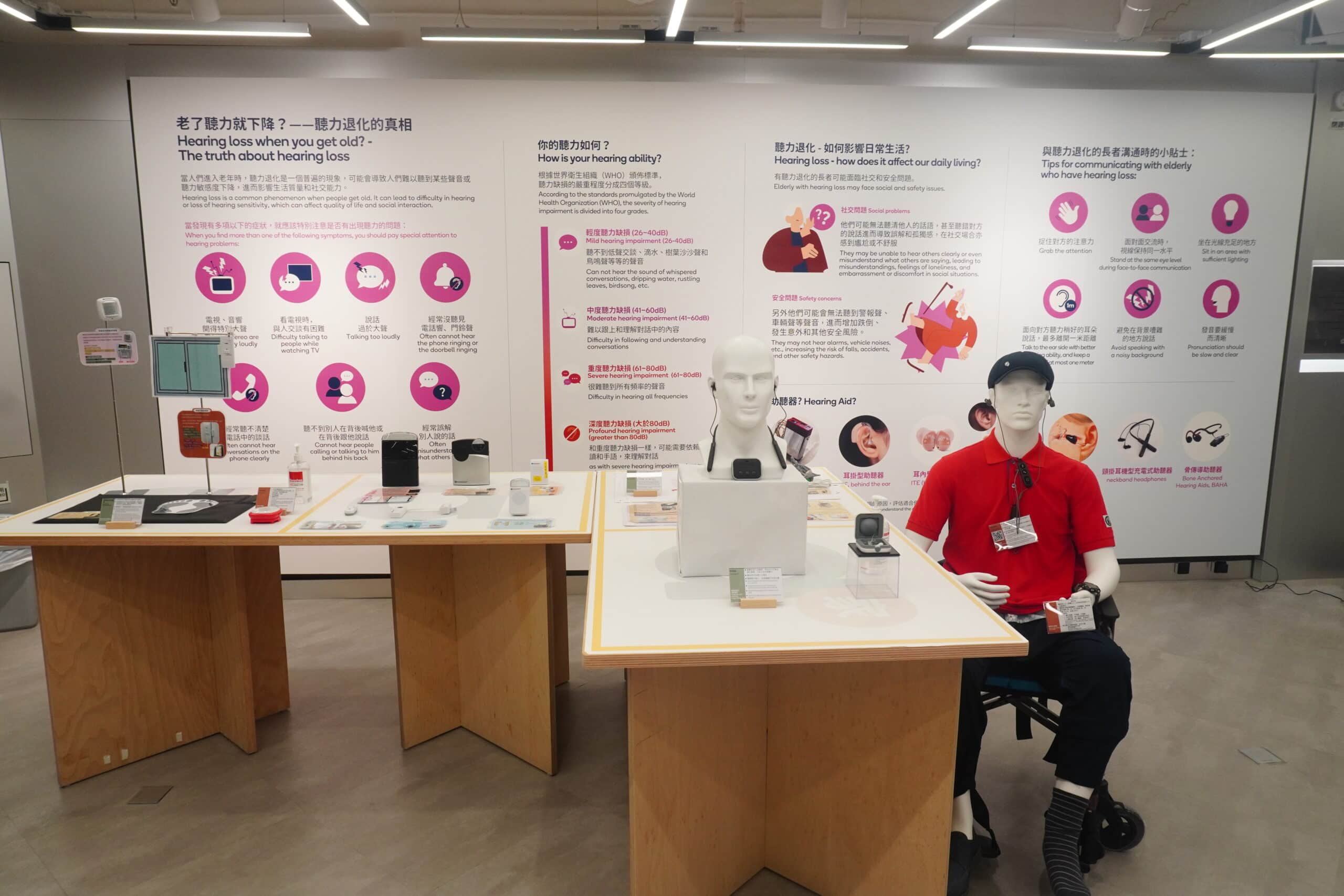 賽馬會「a家」樂齡科技教育及租賃服務中心現正舉行「智能共融,明亮視聽」專題展覽,旨在探討長者在聽力和視力退化下所面臨的日常困難,並提供相應的解決方案。展覽羅列出長者遇到的溝通困難和獨立性降低等各種挑戰,以及介紹如何透過樂齡科技和溝通技巧提高長者的生活品質,主題包括: